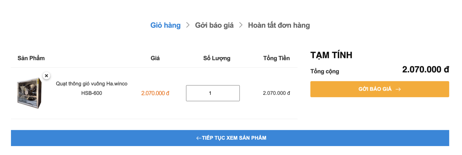 BƯỚC 3 : Điền thông tin giỏ hàng về số lượng và sp
