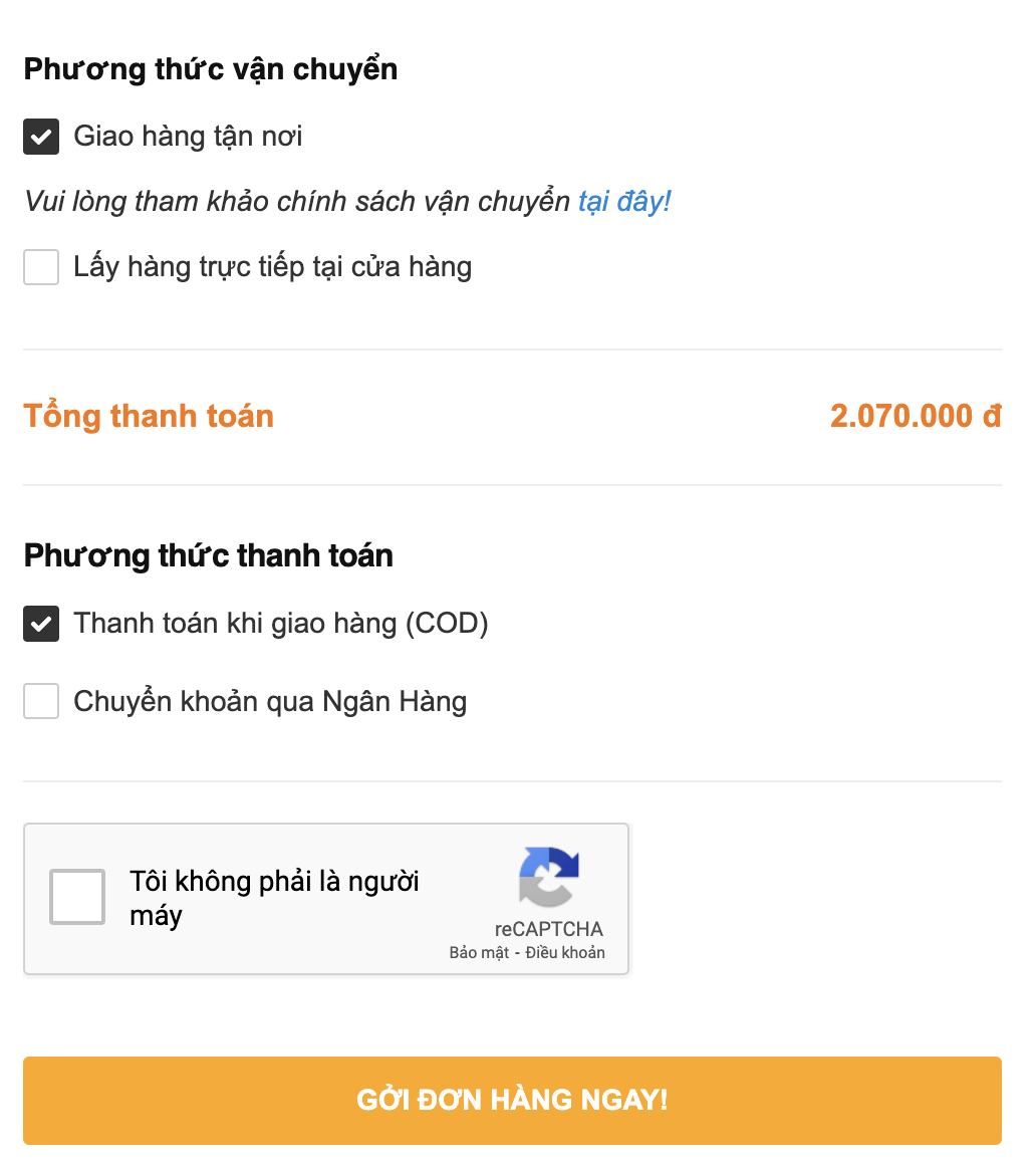BƯỚC 5: Sau khi kiểm tra các thông tin bấm "Gởi đơn hàng ngay để hoàn thành đơn hàng"